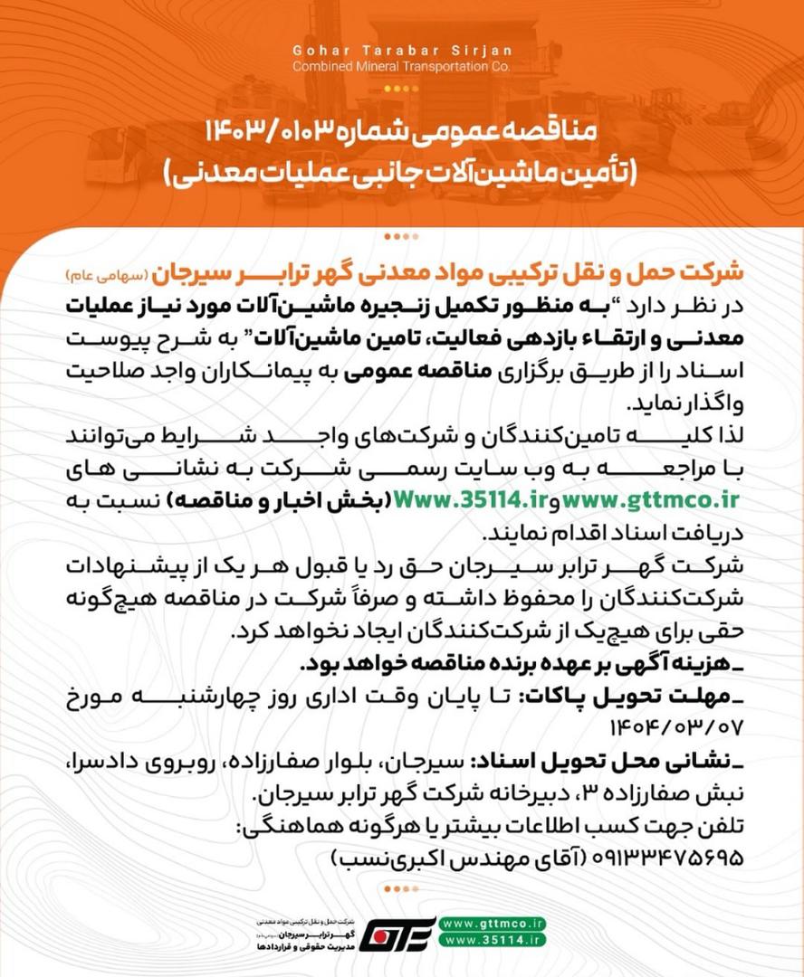 #سیرجانِ_ما #گهرترابرسیرجان #مناقصه #اخبارمعدن #سیرجان #sirjan