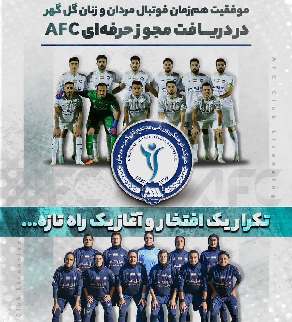 موفقیت همزمان فوتبال مردان و زنان گلگهر در دریافت مجوز حرفهای AFC